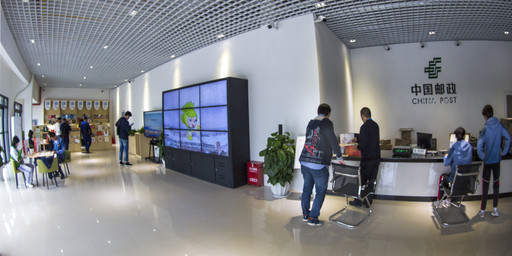宽敞明亮而又简洁的军运会邮政综合服务点和主题邮局。
