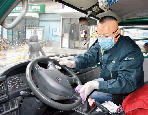 “开水打湿,倒上酒精,先把手再方向盘……”2月25日9点,汪洋一边默念一边给邮车消毒,准备出班投递。旁边,西外大街支局局长王磊目不转睛地看着,生怕汪洋漏掉哪个步骤。见汪洋准备完毕,王磊走过去递上一张纸巾和一瓶酒精说:“汪师傅,您把纸巾垫在口罩里,护目镜上就不会有哈气了。这瓶酒精您揣兜里,用完了再和我说。”