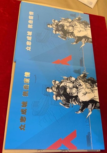 赠送的《众志成城 抗击疫情》邮票邮折将支援湖北的医疗队员抗疫照片制成了肖像邮票纪念张,汇同一整版抗疫邮票和绢质首日封制作成精美的邮折,赠送给奋战在抗击疫情一线的医务工作者,表达对他们勇敢、坚强、奉献精神的敬佩之情。每个邮折都是唯一编码,具有特殊的纪念意义。