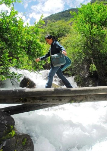 在这条细细的溜索上,随时都有可能发生意外,尤其是雨天溜索太滑刹不住车,尼玛拉木时常会撞在对岸挡墙上,半天爬不起来。但为了乡亲们能收到信件和报刊,她不顾危险,一次又一次乘上溜索过江送信。