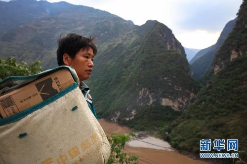 桑南才徒步送邮件途中休息,眺望怒江峡谷 刘东 摄