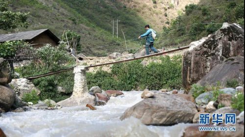 桑南才送邮件途中经过独木桥 刘东 摄