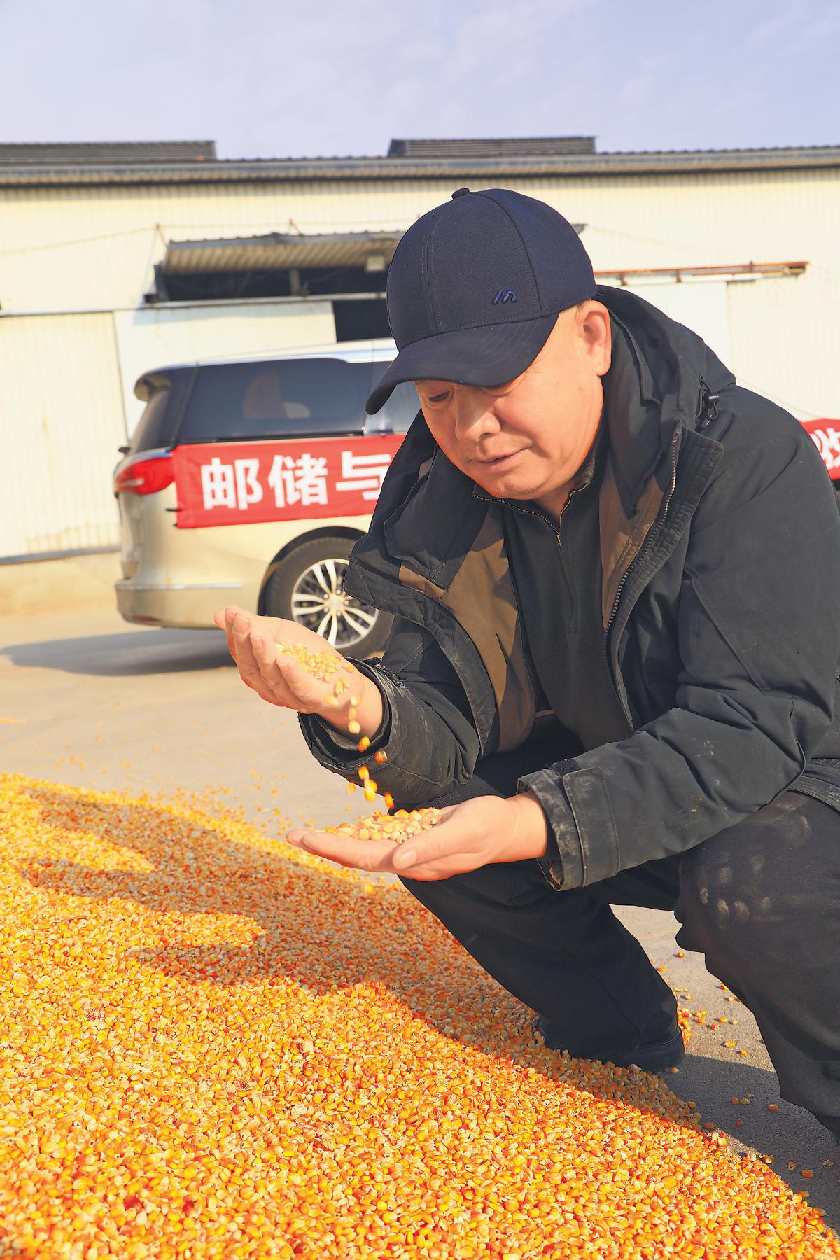 陈景彬正在察看新收的玉米。