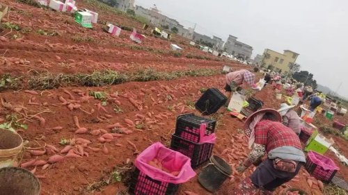 200公里外的湛江遂溪县,番薯种植大户邓某雄的800亩“西瓜红”番薯迎来丰收。此前,他因土地租金、农资采购等一度倍感压力。