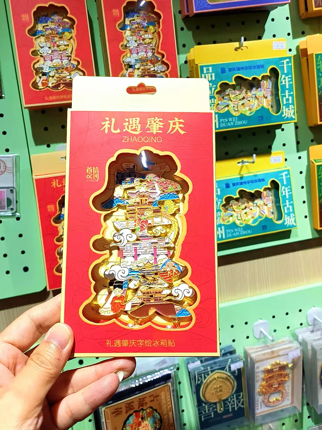 主题邮局以鼎湖山生态资源为基底、肇庆历史文化为内核,致力打造集邮政服务、文化展示与文创体验于一体的文旅空间。走进邮局,文创精品区陈列着设计精美的彩绘冰箱贴、各式明信片,以及十五运会吉祥物“喜洋洋”“乐融融”挂件等,将潮流元素与邮政文化巧妙融合,深受游客青睐。盖章集戳区备有《肇庆城市集戳本》及20枚纪念戳,涵盖鼎湖山、七星岩、披云楼、阅江楼等当地文旅地标,方便游客留存城市记忆。现场还设有明信片自助打印机,游客打印个性化明信片后可邮寄或带走,留下珍贵回忆。